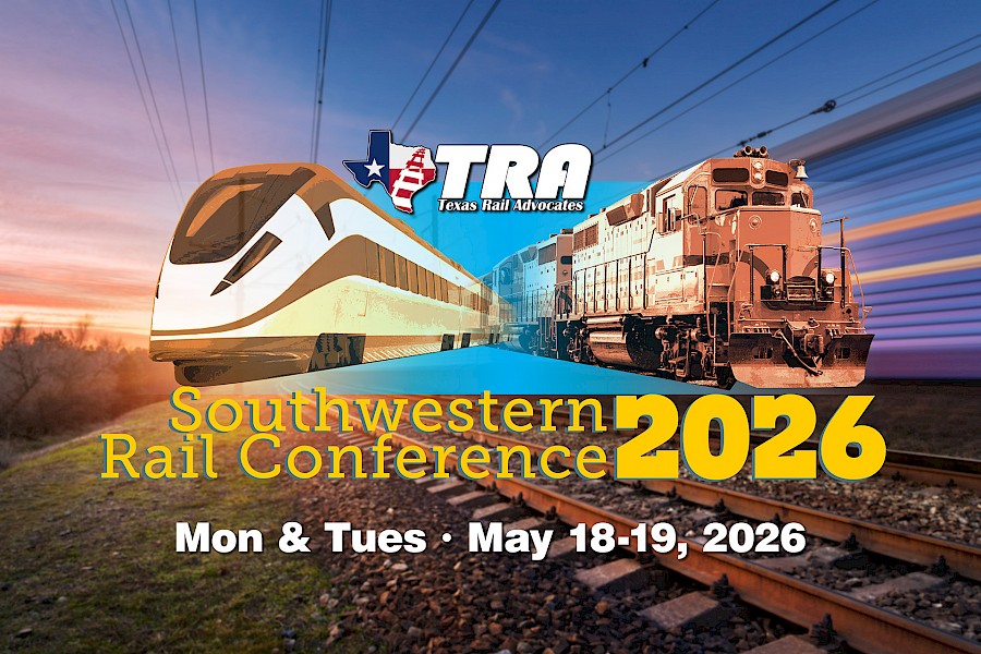 Rail Passengers Association members can register for the 2-day event at https://www.texasrailadvocates.org/events/2026-southwestern-rail-conference/ Until April 10th, RPA members can register for the conference at a rate of $169.00 if you use the Registration Code "Rail Advocate". Regular early registration price is $299.00.
