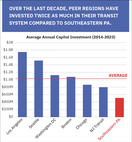 The crisis underscores longstanding disparities in transportation funding by mode in Pennsylvania. SEPTA, established to maintain Greater Philadelphia’s transit infrastructure, has historically received between one-half and one-third of the funding allocated to comparable transit agencies. This structural underinvestment has constrained the agency’s ability to modernize aging infrastructure.